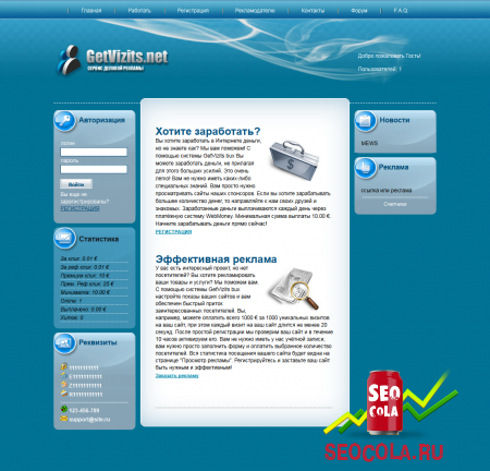 Неплохой скрипт букса Soofast WMP основан на soofast. ПодробностиВерсия: n/a Подключенные модули и плагины: - Ротатор баннеров - Конкурсы - Спонсорский блок - серфинг, задания, контекст, письма - автовыплаты -