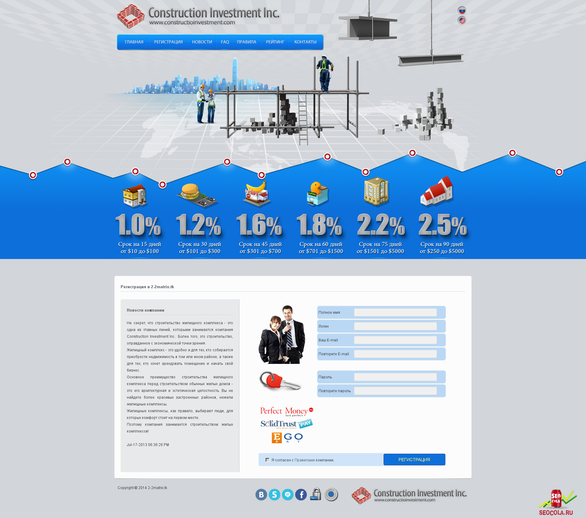 Скрипт GoldCoders 2014 и шаблон construction invesment